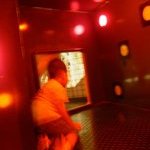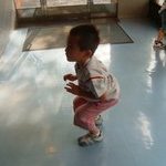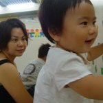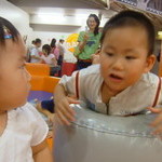 トモコと宝は下のプレイエリアで待ってました。マット上方の親子連れ見えます?白黒の。それです。