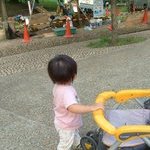 工事現場に興味津々の宝。この後15分近くずっとこのままでした。