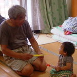 スカート♪ 2008/09/15 誕生日にもらったスカートはいてみたよ〜♪似合う〜?? むぎゅぎゅ 2008/09/15 顔がひしゃげるほどの全力でだっこ。 ピース 2008/09/15 いまどきのピースは手のひらが自分のほうを向くのだ。21世紀生まれめ・・ジェネレーションギャップ感じまくり・・ おじゃましまーす 2008/09/15 おじいちゃんちに遊びにきたら、おばあちゃんお風呂中につき、貴史の部屋で待ってるところ。 お風呂上がり 2008/09/15 たくさん汗をかくそうなので、お風呂に入って気持ちよさそう。 敬老の日 2008/09/15 孫ができて4回目の敬老の日。今年は空が自分で作った絵のプレゼントを持ってきたよ。 お散歩へ 2008/09/15 おばあちゃんが外に行きたい、ということでみんなでお散歩へ。空凪は貴史にべったり。 カート2台 2008/09/15 おばあちゃんの車いすはヘッドレストやティルト機能(椅子がそのまま後ろに傾く)がついてます。 みんなで公園 2008/09/15 お昼時だったので、コンビニで買い込んで公園へ。と言っても食べてたのはうちだけだけどσ(^_^;) 貴史のリクエスト 2008/09/15 カナダへ送るために家族写真を撮りたい、ということで1枚。いい感じ☆