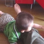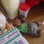 あーちょっとごめんねー。お母さん、足、ジャマよー。