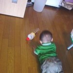 かまってほしくなると腕を引っ張ります。うーん、知恵ついてきたなぁー。