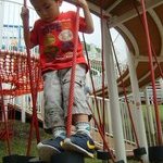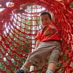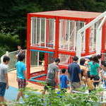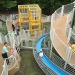 山の斜面を一面利用した高低差のあるアスレチック。午前中なのに目玉のすべり台はこの行列。