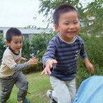 平日にはない凪の笑顔。空とお父さんが一緒に公園、なんて平日には考えられない贅沢だもんね☆