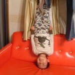 宝にひざまくらして片足で宝のおもちゃなんていじりつつ読書。