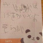 裏には「かぼちゃおばけをかいたよ そらより」と自筆のメモ。あいうえお表見ながら自分で書いたんだって。