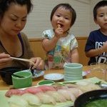 諸々の理由により今日はすしざんまい☆宝は上穴子で寿司デビュー!