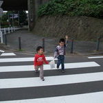 帰ってきた 2008/10/19 空と凪が2人で近所のお店にお使いに行く、というので信号のところで待ってたのです。さっきのはひまつぶーし。 手を挙げて 2008/10/19 幼稚園で教えてもらったらしくて、ちゃんと手を挙げて渡ります。 車が来たら 2008/10/19 ささっと脇へ。家の前の道、意外ととばしてくる車が多くて、これだけは口すっぱくして教えてます。 お駄賃あり 2008/10/19 ちゃんとおつかいできた2人に20円ずつお駄賃。いそいそと財布へ〜♪ んふふ♪ 2008/10/19 達成感とうれしいので舞い上がっちゃった空w 風呂上がり 2008/10/19 右から。本読んでる。本読んでる。本、おい!破ってるだろっ! 交流会 2008/10/20 今日はつみきと地域のお年寄りの方々との交流会。子供らはやや緊張気味。 たんとんとん 2008/10/20 肩たたきの歌にあわせてトントン。とっても喜んでもらえました♪ むぐ。 2008/10/20 疲れて昼も食べずに寝ちゃったので、むさぼるようにおやついただいてます。手は食べちゃダメよぉ〜。 投稿/投函 2008/10/21 空がどうしても子供雑誌に投稿したいというので初ハガキ。右は自分も誰かに書きたい、という凪よりゆうゆへ。