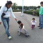 んじゃ、次はスケボーするか、と朝臣さんの提案で凪初体験☆おととと。。