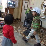 るっくんのマイヘルメット。この後当然「貸してよ」「貸さない」紛争勃発!