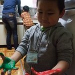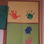 今日のつみきは絵の具を使って手形ぺったんでした。凪は壮絶な感じの自分の手が気に入ったみたい♪