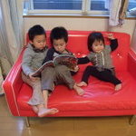 3人で本読んでたはずが、カメラ向けたらすかさず宝が反応☆