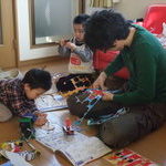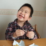 空がまだ外出できないので、子供雑誌の付録を作ってます。天気いいのにねぇ。