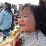 プーさんの山車が来て、めちゃくちゃ喜んでます。よかった♪この笑顔が見たかったんだよ。
