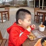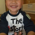久しぶりの児童館。今日の散髪は真吾です。