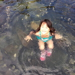 怖くないよ、大丈夫よ、と言いながら岩場を移動してあげる凪。