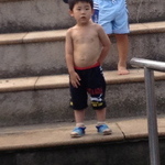 タイドプールにあるサザエ岩にて。ジャーンプ!