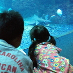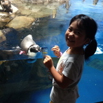 宝が持ってるパンフを餌と見間違えて食いついてます。