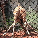 パパキリンは柵の上から首を降ろしてゆうゆうと草をはんでいるんですが、まだ届かないソラくんは執念で下から食べてますwがんばれー。大きくなれよー。