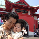 合流記念、花火大会。煙にまかれる母と涼しげな凪。