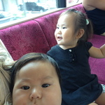 乗り馴れない乗り物にワクワクの寿とやや合成チックな春。