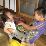 朝起きたら、久しぶりに兄姉がいて大はしゃぎの寿。さみしかったもんねぇ。よかったねぇ。