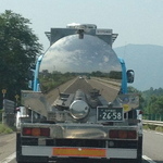 目の前を走るタンクローリーに自分たちが映って面白かった。そして、何よりこのタンクの中身は液糖!甘っ!