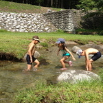 「水遊び広場」なる自然の沢を利用した水場。水が雪解け水だから夏でもかーなーり冷たい!