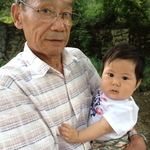 無謀な母の手を逃れ、じーじに抱っこでカメラ目線。