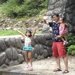 向こう岸で両手に花の真吾。ムスメがパパっ子に育って幸せねぇ。ねぇ。