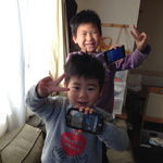 ではなくて、昨日、電器屋さんで古いサンプル携帯をもらってきたのでした。それでもご満悦な子供たち。