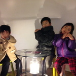 それぞれに堪能 2013/12/26 好きなものを好きなだけ、っていいよね。 食事の後は 2013/12/26 すっかり日も暮れて、イルミネーションがスタート! ばーばとイエイ☆ 2013/12/26 この2ショット、久しぶりかも。今回の旅行は、久しぶりに空が「写して〜」って言うことが多かったなぁ。 ミッキーとパチリ☆ 2013/12/26 1名泣いてますがwみんないい顔♪ かまくらだよ 2013/12/26 狭いところでも大騒ぎ。 精鋭 2013/12/26 撮り直してよ〜、という人達だけでもう一度。 今年のテーマはコウノトリ 2013/12/26 実は寿はこのコウノトリが怖いと泣いているのでした。えーっと、これメインだからさ、どこ行ってもあるよ、きっと(汗) こちらのかまくらでも 2013/12/26 またも珍しい組み合わせでパチリ☆ 凪と一緒に 2013/12/26 撮ってくれる人がいないので(涙)自分撮りです。凪が優しい微笑み。 ナンダココハー??? 2013/12/26 キラッキラシテルゾー。