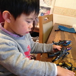 先ほどのフィギュアやらこのベルトやら、たくさんのライダー関連おもちゃをお友達からいただきまして。我が家のライダー熱再び、です。