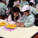 面倒見のいい宝さん。お隣の子にレクチャーを。