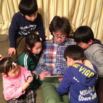 夕飯後、元祖ゲーマーのお父さんによるケリ姫の模範演技。子供たちも真剣です。