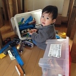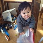 笑ってごまかす、という技を早くも身に付けた様子。いらなーい、と思うけど、かわいーい(親バカ)