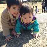 外でも元気にハイハイの春。新も春がかわいくて仕方ないらしい。兄さんになったねぇ。