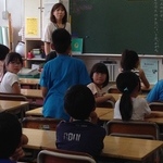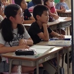 算数の時間。すでに考え方が頭にあるらしく、他の子の発表を聞いていろんな反応してる。