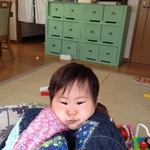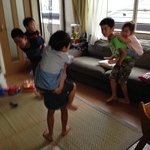 突如始まった騎馬戦。上の子を落としたら勝ち、なんだそうです。。え、騎馬戦ってリビングでやる遊び!?