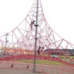 このロープピラミッド的な遊具、たまにあるんだけど、昇り好きなうちの子供たちには大好評なのです。どんどん昇る。