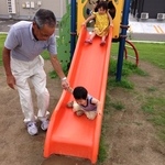 スーパーの近くにある比較的新しい公園。ばーばのところに行ったら、必ず行く3本指のうちのひとつ。遊具がムシっぽくてかわいい。