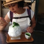 江ノ島のちょっと有名なかき氷屋さんに来ました。中に小豆が入ってるんです、宇治金時。