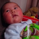 ほっぺががさがさになっちゃった。おくすり塗らなくちゃいけないんだってー。