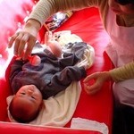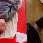 今日は区の保健センターから助産師さんが訪問にきました。簡単な検診や予防接種の説明をしてくれます。
