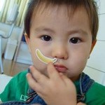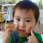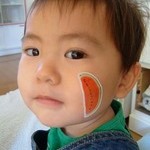 両頬に貼って「ぅたっちゅ!(ふたっつ!)」だって。