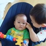 年上の子がやってるゲームにチビっこが群がってる光景。空もセオリー通り、くぎづけです。