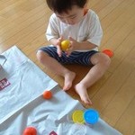きいろー♪きいろー♪と歌いながら、黄色いのをちぎって並べる遊びを開発。
