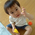 はじめて粘土遊びさせてみました。この粘土は子供向けに小麦粉と塩と水でできているのだそうです。