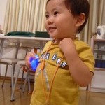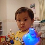 エリカちゃんにTDLグッズを貸してもらった途端、この笑顔!光るのがツボにはまったらしい。