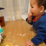 ひとりで食べたくなってきた凪。いよいよキミも3食ごとに着替えるのか。。。