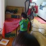 子供らも眠くなって来たし、ってことでおいとましようと外に出たら、なんとエレベーターが点検中(!)12階から階段で、ってのは無理なので再びお邪魔することに。。